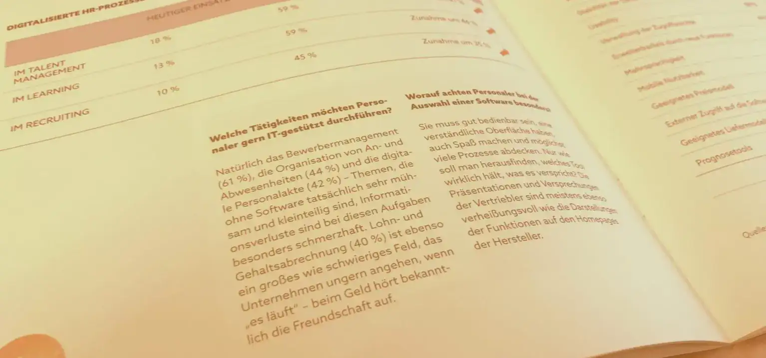 Nach Dokumenten suchen, ewiges Datensammeln für unnötige Berichte, unklare Kommunikation, doppelte Daten – solche Nerven aufreibenden Alltagsärgerlichkeiten gehören mit einer guten HR-Software in der Regel der Vergangenheit an. Wer sich damit beschäftigt, ist mit unserem Whitepaper zum HR-Software-Vergleich gut beraten.