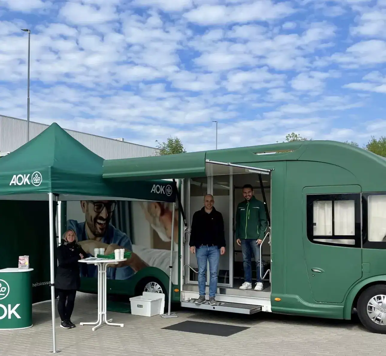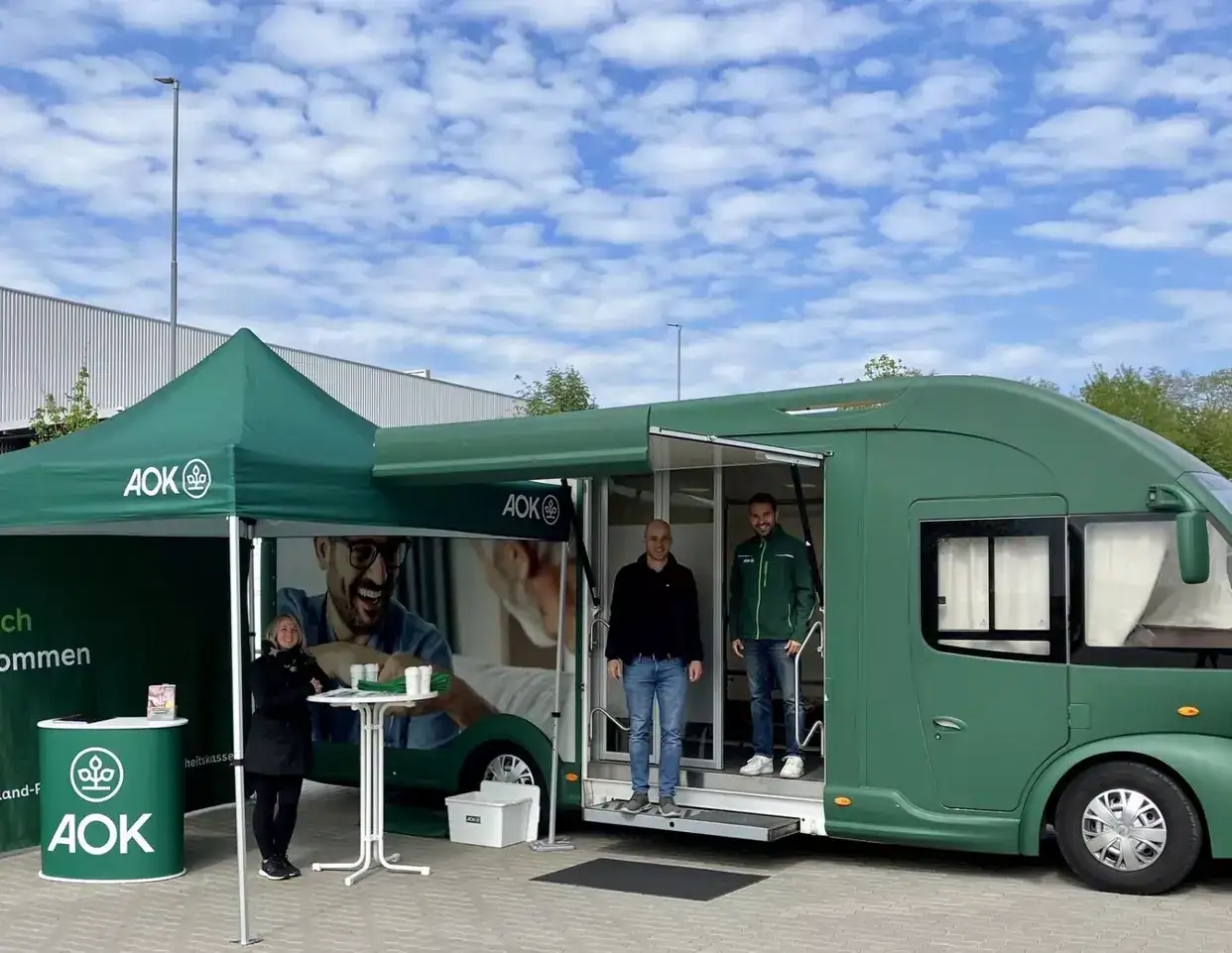 Infrarotmessung, nicht etwa nur im Büro, sondern im AOK-Truck! Die ansässige Mercator Apotheke kam ebenfalls zu Besuch und führte Blutdruck- und